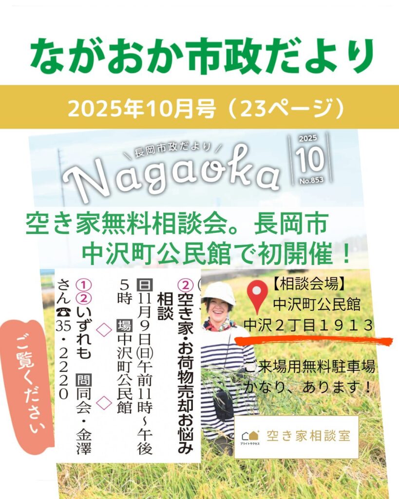 このたび、無料相談会情報が、 長岡市の「市政だより」10月号に掲載されました!