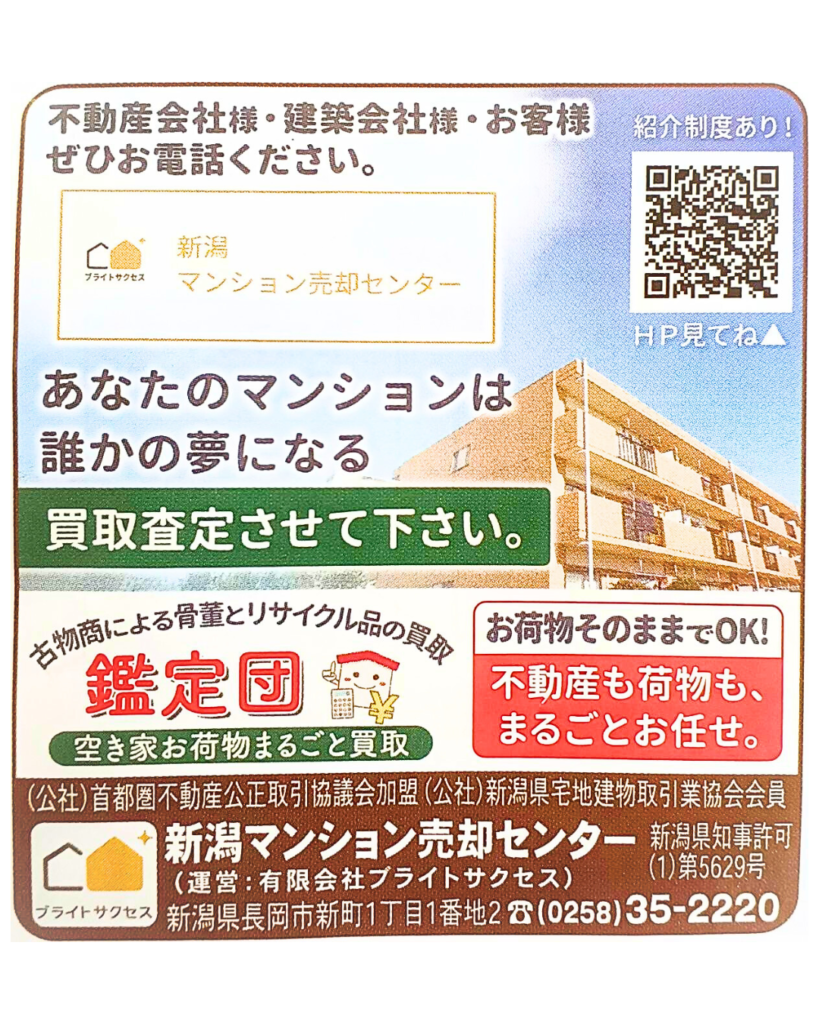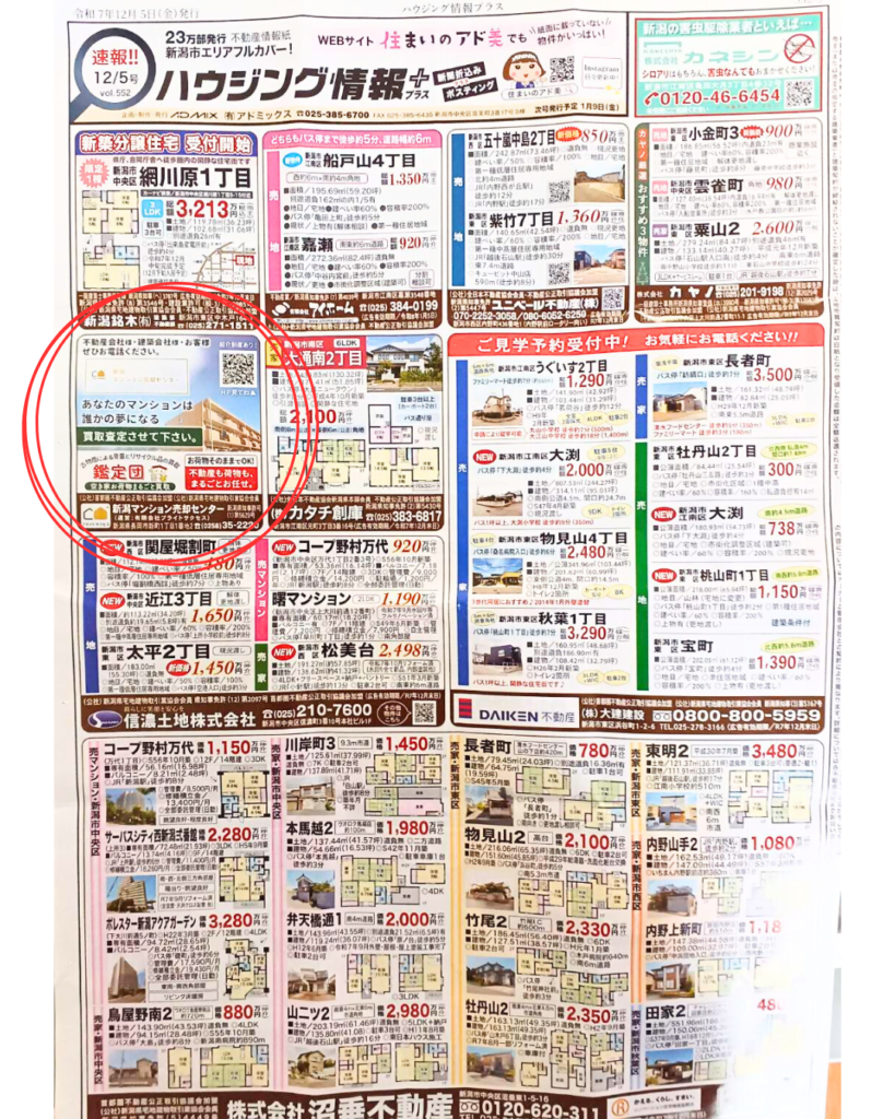 このたび、住宅情報紙 「ハウジング情報+(プラス)」 に、 弊社が運営する 「新潟マンション売却センター」 の情報が掲載されました。