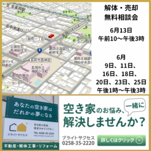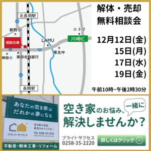 戸建/マンションの空き家相談 —新潟県の 新潟市、長岡市で地域密着の空き家に特化した不動産+解体工事の会社です。解体/売却/荷物買取など無料相談受付中。